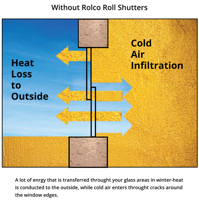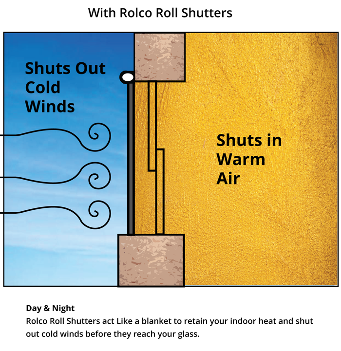 - Roll shutters enhance the thermal efficiency of single-pane glass by more than double.